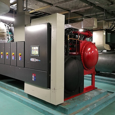 | 由于原有機組使用多年冷量衰減,導致夏季高峰冷凍水溫較高,考慮實際情況,東莞美維電路先采用III MULTISTACK 捷豐(磁懸浮空調的發明者和領導者)離心變頻中央空調機組MTW1000F代替1臺原來的750RT約克離心機組,改造期間開啟另外5臺離心機。 |